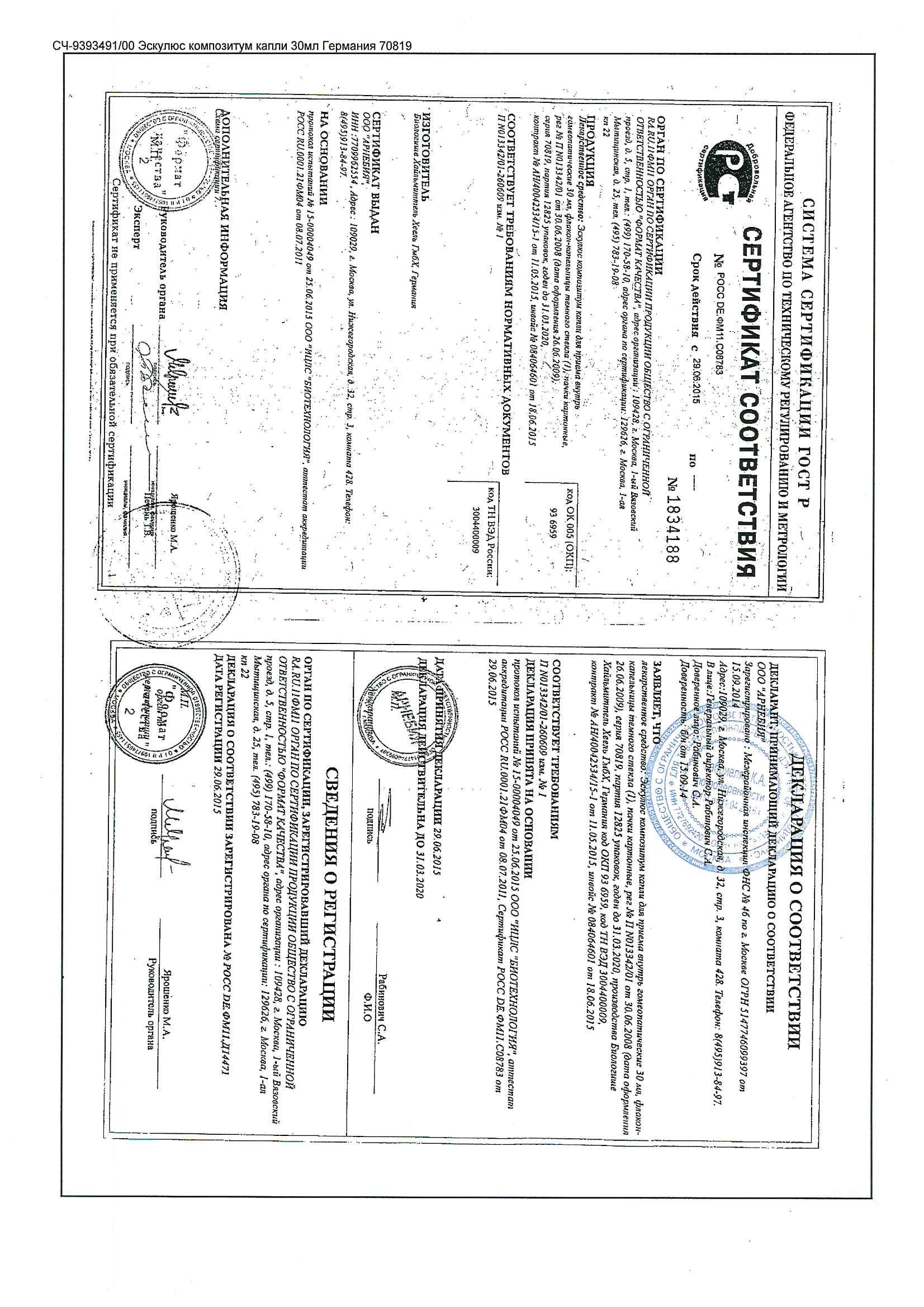 Эскулюс композитум - гомеопатический препарат, улучшающий периферическое кровообращение. Оказывает венотонизирующее, спазмолитическое и анальгезирующее действие. Препарат нормализует состояние венозного кровообращения и микроциркуляцию. Действие препарата основано на активации защитных сил организма и нормализации нарушенных функций за счет веществ растительного, минерального и животного происхождения, входящих в состав препарата.