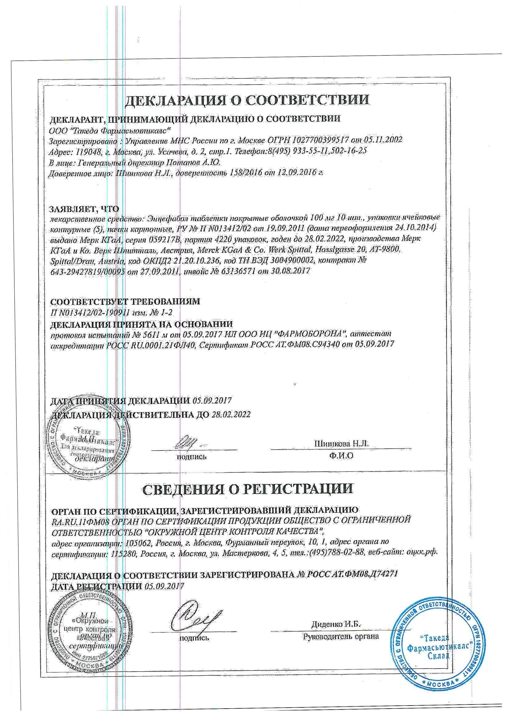 1 таблетка, покрытая оболочкой, Энцефабол содержит: