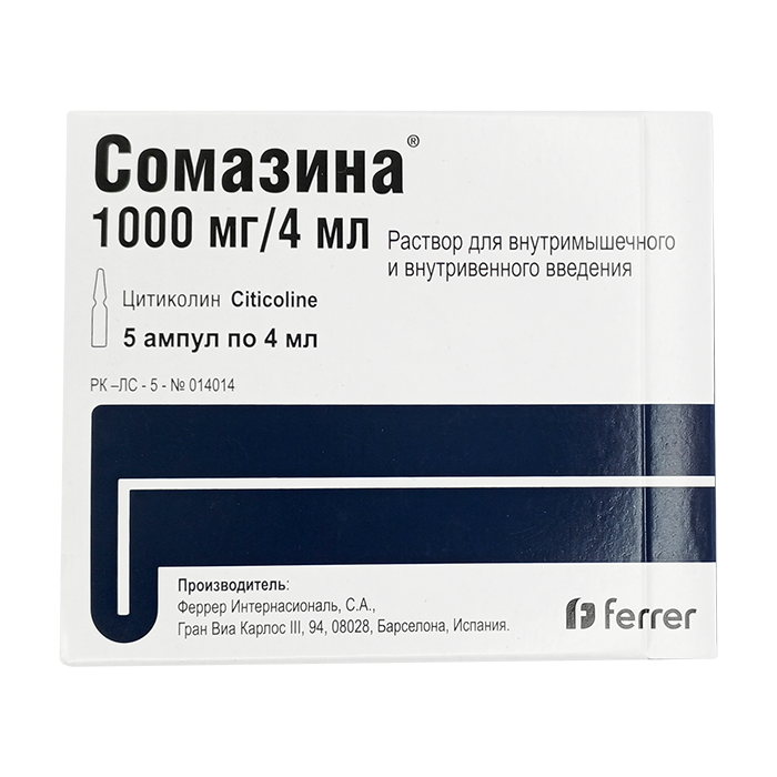Сомазина, активным компонентом которого является цитиколин, способствует восстановлению повреждённых клеточных мембран головного мозга и увеличивает производство некоторых важных веществ, необходимых для правильной работы нервной системы. Цитиколин улучшает метаболизм в нервных клетках и помогает защищать их от повреждений, вызванных такими факторами, как недостаток кислорода.