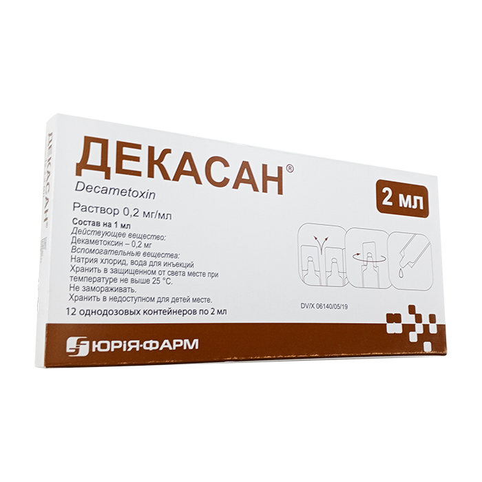 1 мл раствора содержит 0,2 мг декаметоксина.