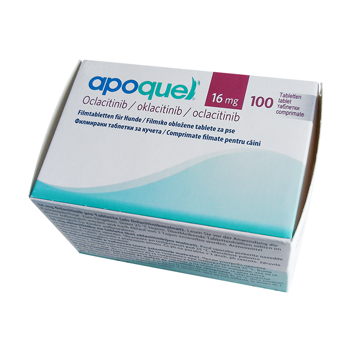 Оклацитиниб действует как ингибитор Янус-киназы. Это значит, что он блокирует определенные ферменты, которые играют ключевую роль в активации иммунных клеток и развитии воспалительных реакций на аллергены. Благодаря этому действию, Апоквел эффективно снижает зуд и воспаление кожи у собак.