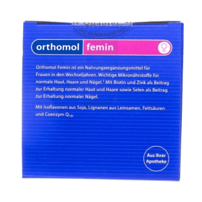 Менопауза или климакс – достаточно сложный период для каждой женщины, сопровождающийся проявлением многих неприятных симптомов. Ортомол Фемин – биологически активная добавка к пище, применяемая для нормализации состояния женщины во время менопаузы. Orthomol Femin предлагает женщинам, переживающим период менопаузы, фитоэстрогены в оптимальной концентрации и в комбинации с комплексом микронутриентов, который специально разработан для удовлетворения повышенной в потребности организма в период изменений.